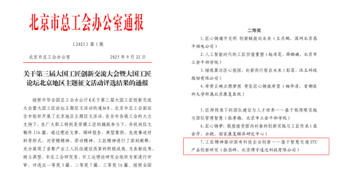 近日,在北京市总工会组织开展的第三届大国工匠创新交流大会暨大国工匠论坛北京地区“匠心铸梦,向新而行”主题征文活动中,集团所属单位参加征文活动的职工从各自岗位实践出发,围绕发展新质生产力、充分发挥工匠作用等方面积极撰稿,分享经验心得。经市总工会专家组评审,集团共有两篇论文获奖:云星宇全资子公司博宇通达公司通信设备高级工程师张岱祥同志撰写的《工匠精神驱动国有科技企业创新——基于智慧交通ETC产品创新研究》荣获二等奖;集团八达岭分公司收费班长田迎同志撰写的《聚焦通行“堵点” 谋“新”一路畅行——ETC后置天线补刷控制器创新实践》荣获三等奖。