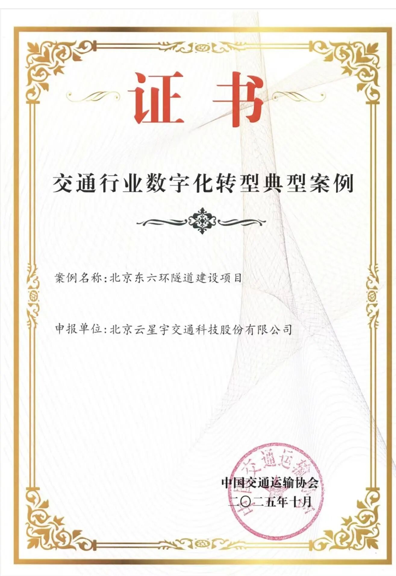 近日,云星宇公司申报的《北京东六环隧道建设项目》案例,凭借突出的技术创新性、显著的实施成效与广泛的行业示范价值,成功获评“交通行业数字化转型典型案例”。